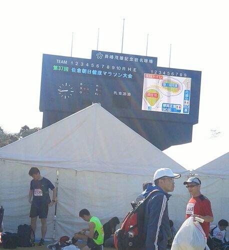 佐倉マラソン行ってきました。結果は・・・4時間切れず!(涙)。32kmで歩きだし、35kmくらいで4時間のペースランナーに追い抜かれました。サブフォー無理だなーと思いながらとぼとぼ走って、40kmで時計を見るとまだ10分ちょいあるじゃありませんか。あれ?…