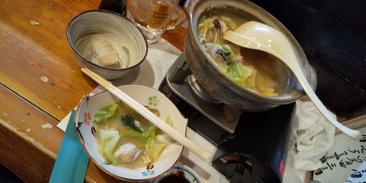 焼き物、煮物、揚げ物、食べたいものはたくさんあれど、この時点ですでに満腹に近づいておりました。悩んだ末、アンコウ鍋(500円)を注文。